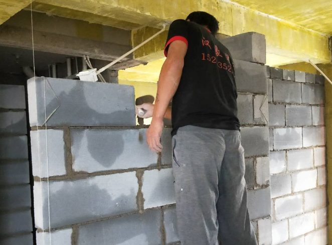 砌筑寬度≥120mm ,砌筑長度考慮砌體的穩(wěn)定性而定,同時(shí)必須有嚴(yán)格的加固措施。